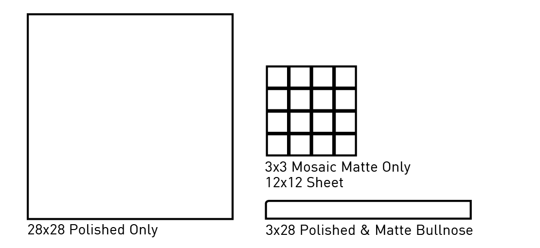 28×28, 3×28 Bullnose, 3×3 Mosaic
